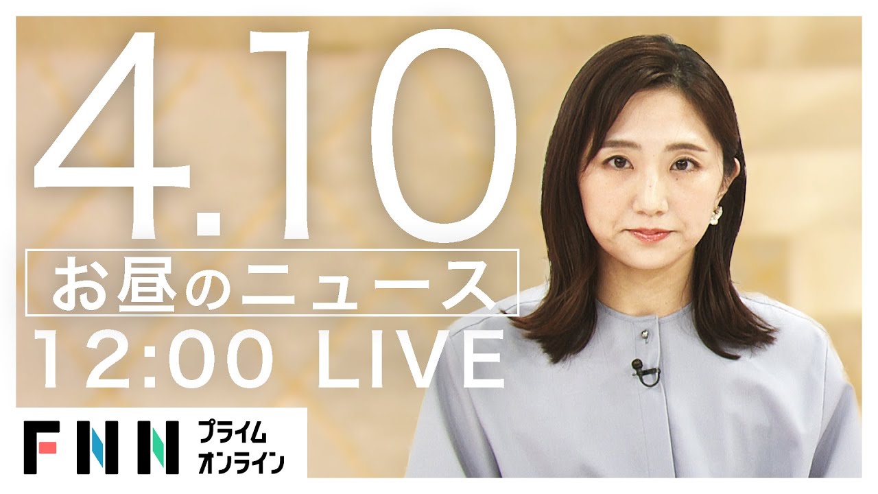 お昼休みに最新ニュースをお届けします。 ライブ配信は毎日午後0時ごろから午後4時ごろまで。 #お昼のニュース #新型コロナウイルスFNNプライムオンラインチャンネル登録をお願いします! 4月10日FNNFNNプライムオンラインFujiTelevisionLIVEお昼のニュースNewsVideoニュースフジテレビフジテレビジョン新型コロナウイルスFNNプライムオンライン新型コロナウイルス最新