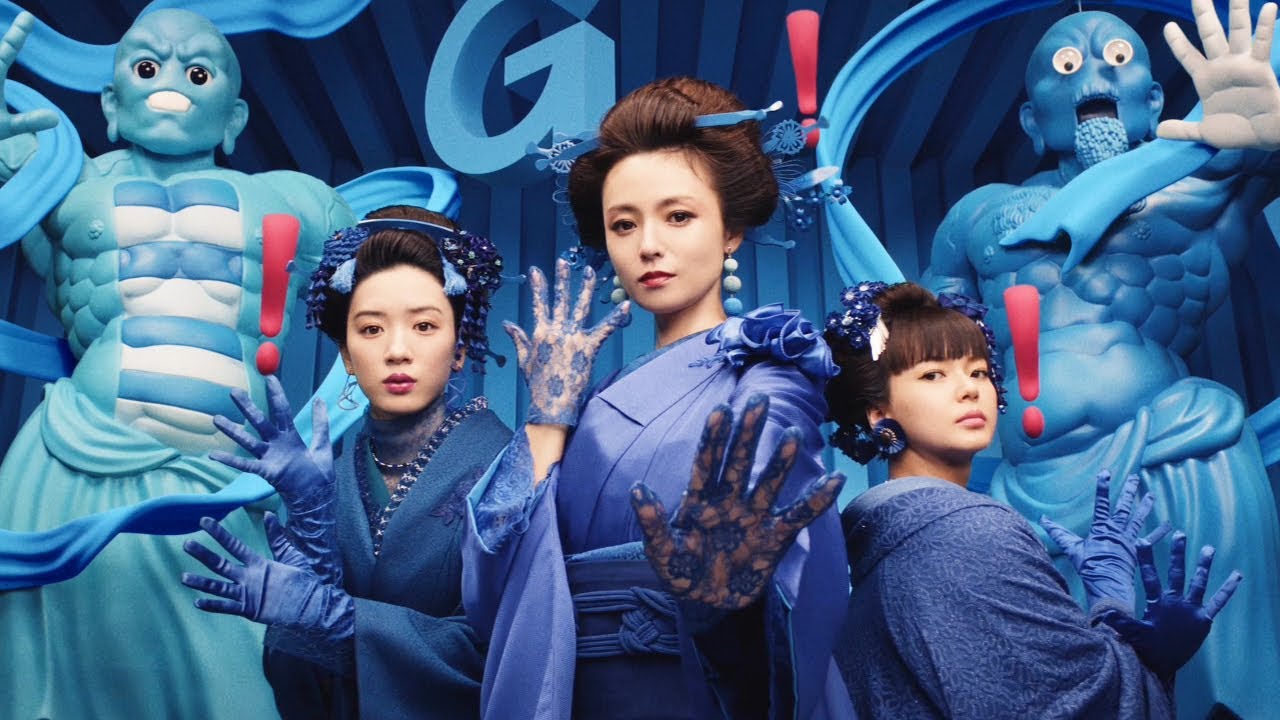空中に「G」と「?」の文字が浮かぶ空間で、青い着物を身にまとった三姉妹。「+5G」による進化を象徴した巨大な彫刻のような姿になったママ・パパに向かって、長女が「ママ」と問い掛けると、「+5G」とママが返事をし、次女が「パパ」と問いかけると、パパからも「+5G」と答えが返ってきます。疑問を抱いた三女が「なに?+5Gって」と聞くと、「魔法のことばよ」長女が答える。いつものように「UQ♪」という掛け声に合わせてカメラ目線を決め、着物姿の三姉妹による艶やかなポーズが映し出される。最後は三女が「で、結局なに?」と問うと、次女は「検索して」と言い切り、「+5G」は謎に包まれたまま幕を閉じる。