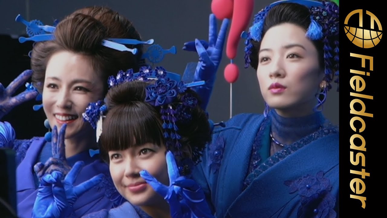 UQ三姉妹でおなじみの深田恭子さん(長女)、多部未華子さん(次女)、永野芽郁さん(三女)が、青い着物をまとい華やかに登場。