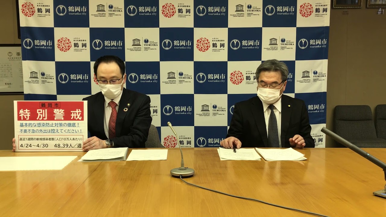 クラスターからの家庭や職場への感染の拡大、そこからの新たなクラスターの発生を起こさないために、本日、本間新兵衛鶴岡市議会議長の同席のもと、鶴岡市として「特別警戒」として市民の皆様に更なる注意を呼びかけることとしました。