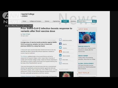 ファイザーが開発した新型コロナワクチンについて過去に感染したことがない場合、1回の接種だけでは変異型への免疫は十分に得られないことがイギリスの大学の調査で分かりました。