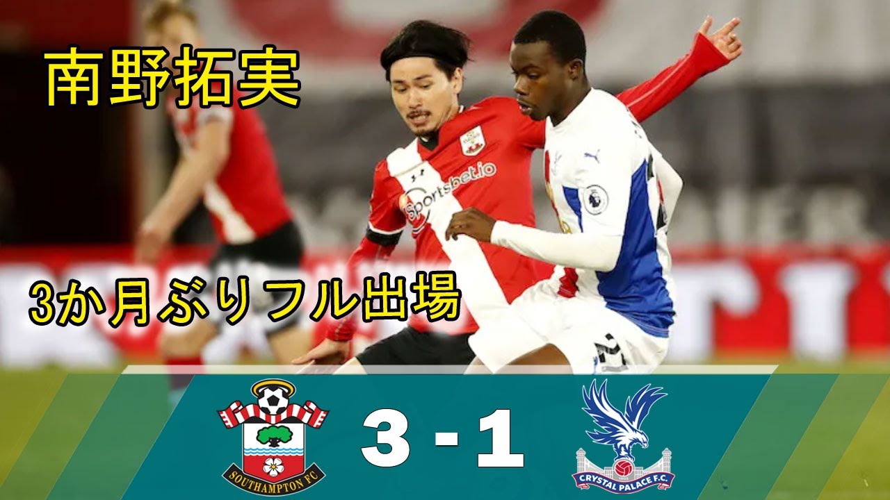 「頑張るが..」南野拓実、3か月ぶりフル出場で逆転勝利!サウサンプトン 3-1 クリスタル・パレス 5月12日