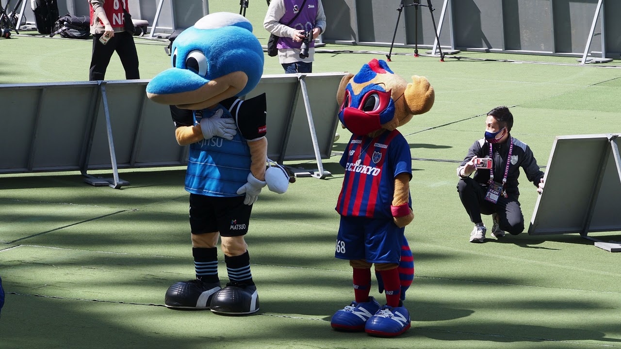 ふろん太、ドロンパがアウェーゴール裏に挨拶に来てくれました。