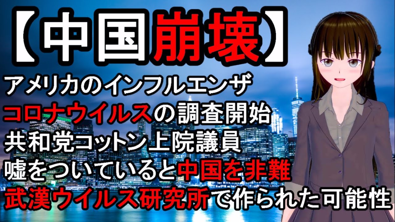 また、コットン上院議員は「このウイルスは武漢の海鮮市場からきたのではない」「中国で広く尊敬される疫学者の研究によれば、初期の数人の感染例は、市場とはまったく接点がなかったことがわかっている」と話しています。以前からお話ししている、武漢ウイルス研究所を疑っているとのこと。