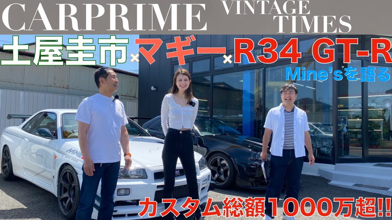 今回のカープライムは、特別企画。土屋圭市のヴィンテージタイムスに、あのファッションモデルで車好きが講じて、「Maggy’s Beauty and the Speed」も立ち上げた、マギーさんと一緒にスカイライン GT-Rを土屋さんと体感します。今回は、姉妹メディアの車選びドットコムの撮影と同タイミングでしたので、工藤貴宏さんも同席し、スカイライン GT-R、その中でもラストのモデル、R34 GT-Rをなんと、スペシャルということで、伝説のショップ、マインズさんにて取材させて頂きました。あの有名なマインズのR34 GT-Rはフルレストアして車検を取られていない状態でしたので、R34GT-Rの試乗シーンでは、ユーザーさんのR34 GT-Rになっております。ですが、スカイライン GT-Rの素晴らしさは、全てのGT-Rに共通することです。是非、最後までご覧ください。