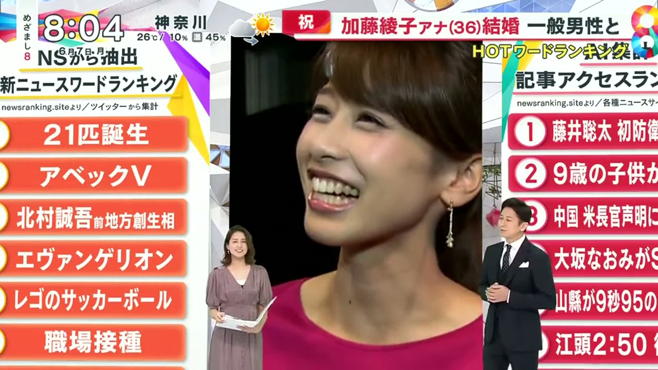加藤綾子アナ(36)結婚一般男性と 『 めざまし8 2021年06月07日 New 』