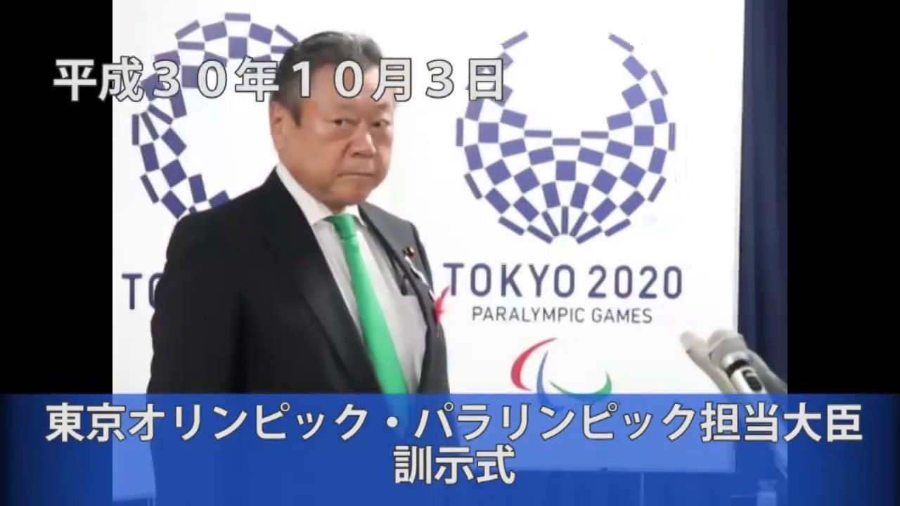 平成30年10月3日(水)に行われた、櫻田義孝東京オリンピック・パラリンピック担当大臣の訓示式の映像です。 http://www.kantei.go.jp/jp/singi/tokyo2020_suishin_honbu/statement/ にも掲載いたします。 OlympicolympicsTokyo 2020オリンピックパラリンピックホストタウン丸川五輪相大臣小池山形岩手復興東京 2020 オリンピック東京 2021 オリンピック東京オリンピック東京パラリンピック競技大会東京大会東京都組織委員会遠藤利明都知事鈴木俊一震災