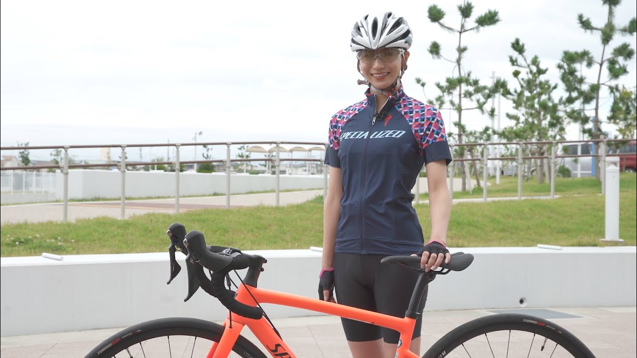 自転車:TARMAC DISC EXPERT/バイクウェア トップス:SL PRO JERSEY SS WMN/バイクウェア パンツ:SL R BIB SHORT WMN/グローブ:BODY GEOMETRY GRAIL GLOVE(以上、Specialized)
