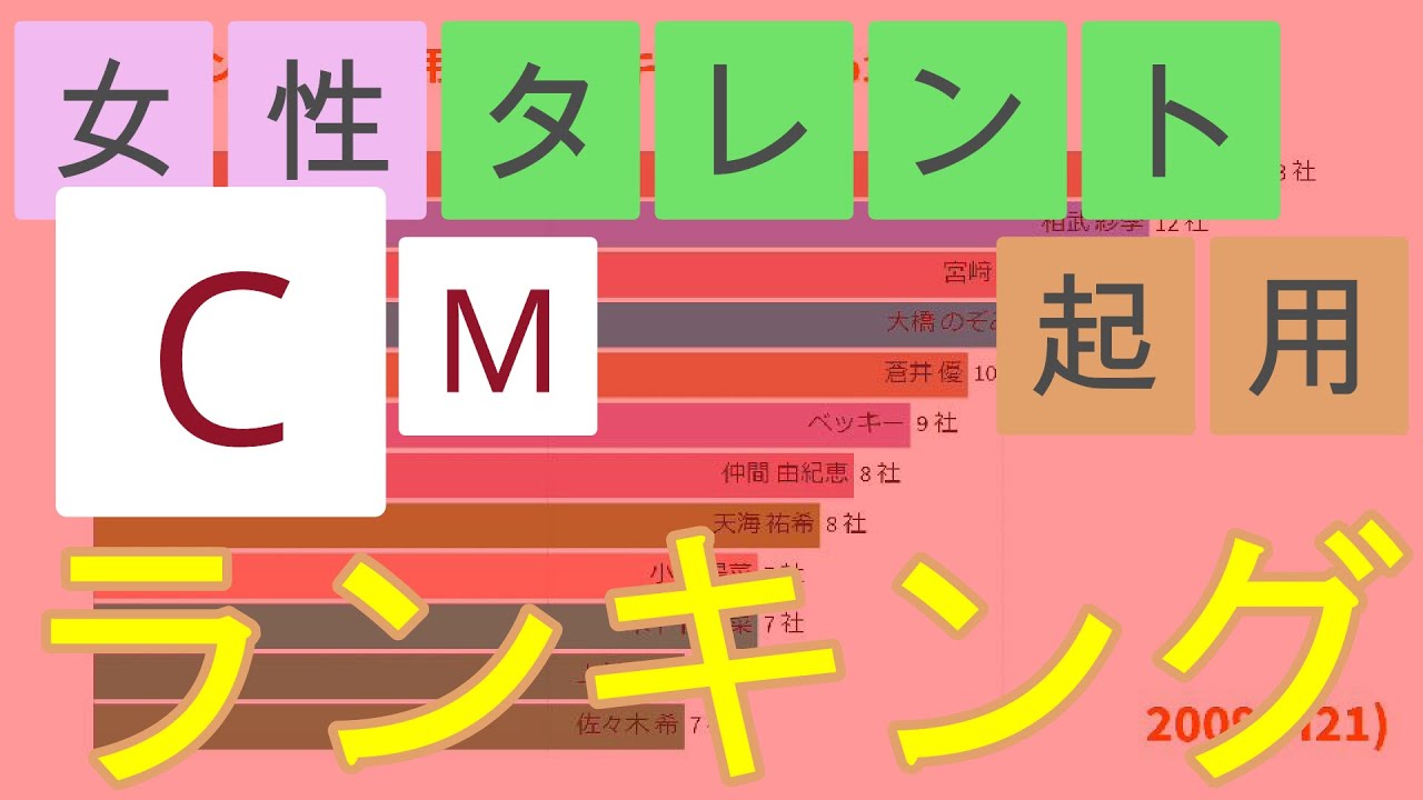 CM起用社数の多い女性タレントを登場順で示します。男性タレントのCM起用社数ランキングにも「マツコ・デラックス」が登場しますので見てみてください。