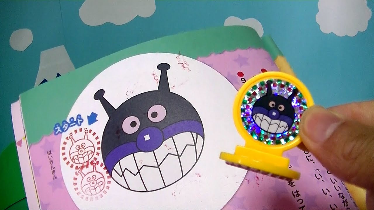 バイキンマン スタンプで「い」ぺたぺた あそび あんあにおも)°〇°(