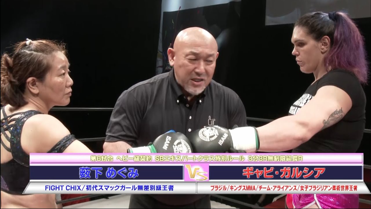 身長188cm、体重93kgの体格を誇る“霊長類ヒト科最強女子”ギャビと、“女子格スーパーレジェンド”薮下めぐみの対戦をご覧ください!