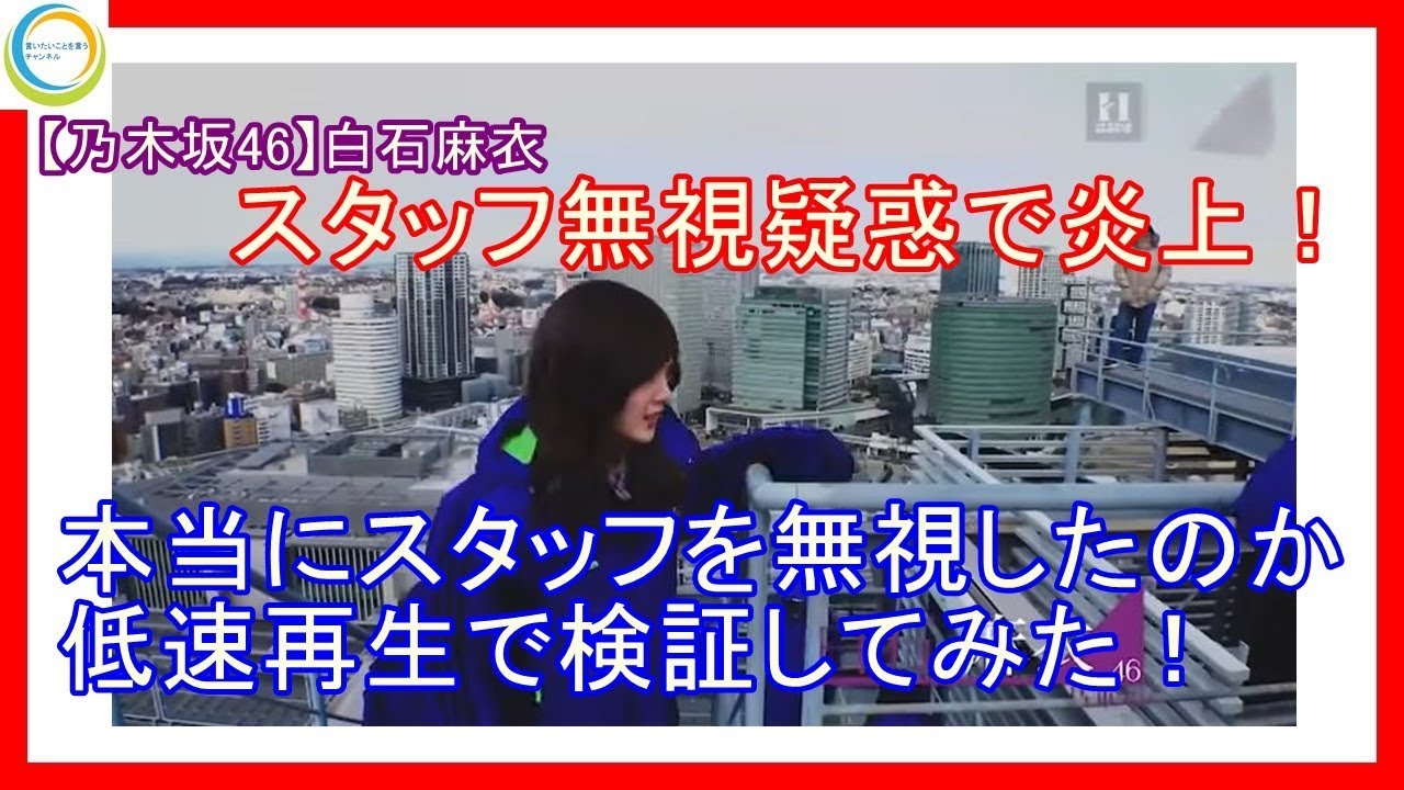 乃木坂46の白石麻衣さんが「はるやま」のCMのメイキング動画でスタッフ「ガン無視」で炎上していますが、本当に無視したのか通常速度ではわかりづらいため、低速再生で検証してみました。一度ネットで炎上すると、あることないこと書かれ、私生活に影響が出そうな気がします。この動画では炎上理由となった挨拶がなかったのかを低速再生で確認します。一度目は全体を通常の半分の速度で再生。二度目に問題の箇所のみを通常の10分の1の速度で再生。最後に問題の箇所のみを通常速度で再生します。この動画では炎上に加担するのではなく、炎上が収束すればいいなと願っています。※著作権の都合上、削除される可能性が非常に高いため、お早めにご視聴ください。