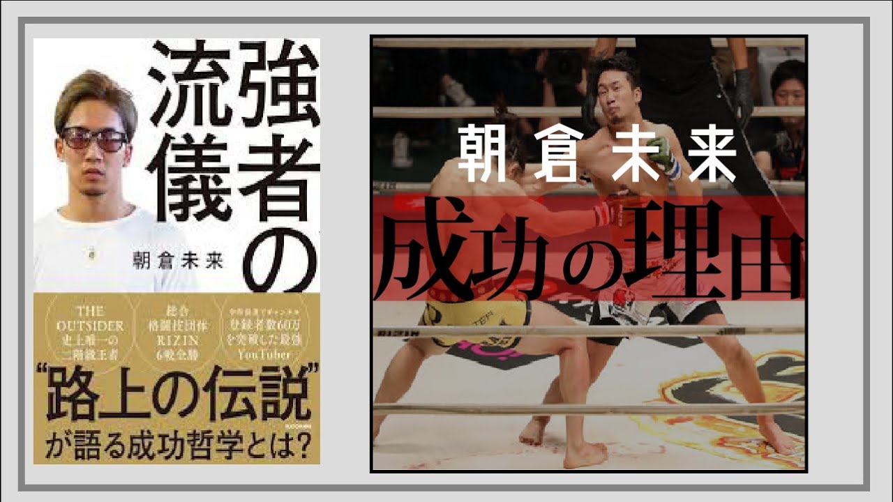 今回ご紹介するのは、朝倉未来さん初の著書「強者の流儀」です。総合格闘家、そしてトップYoutuberとして活躍する朝倉未来さん。 そんな朝倉さんの考え方や生き方、日々の習慣がまとまった一冊です。・弱い自分を克服したい ・人生で成功したい このような人のおすすめの動画です。#朝倉未来 #強者の流儀 Videoスキマハック内容強者の流儀強者の流儀 まとめ強者の流儀 要約強者の流儀朝倉未来が語る成功哲学9分で解説朝倉兄弟朝倉未来
