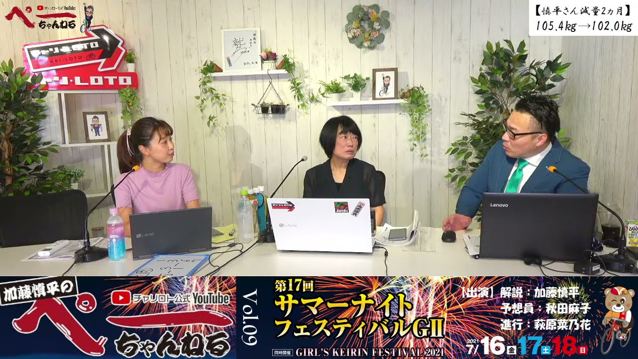 出演は、解説兼車券アドバイザーの加藤慎平さんに、車券を買う勝負係、そして進行MCを含めた3名で行います。