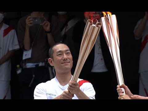 聖火、都庁で到着式 最終ランナー中村勘九郎さん 東京五輪