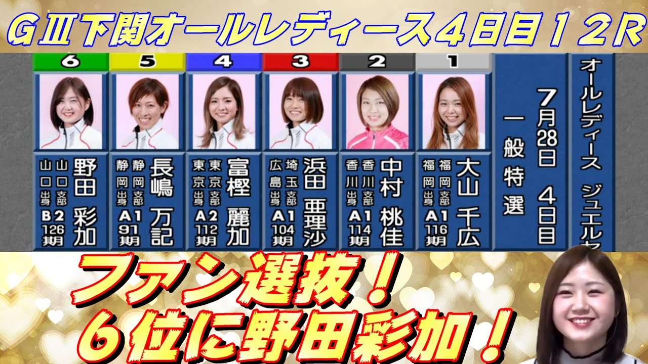 G3下関オールレディース4日目12レースは一般戦のファン選抜戦。