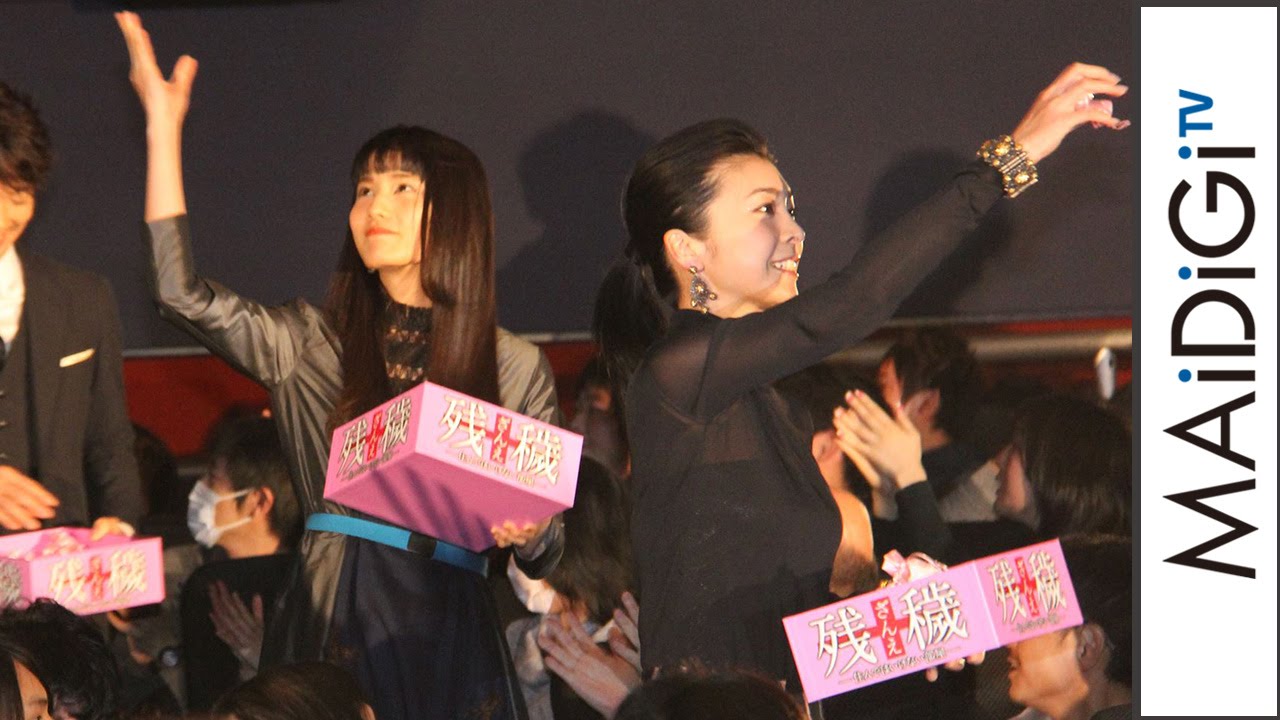 “Yuko Takeuchi, Ai Hashimoto “”throw beans”” at stage-greetings event on first screening day. Stage-greetings event on first screening day of movie “”The Inerasable”” 1.