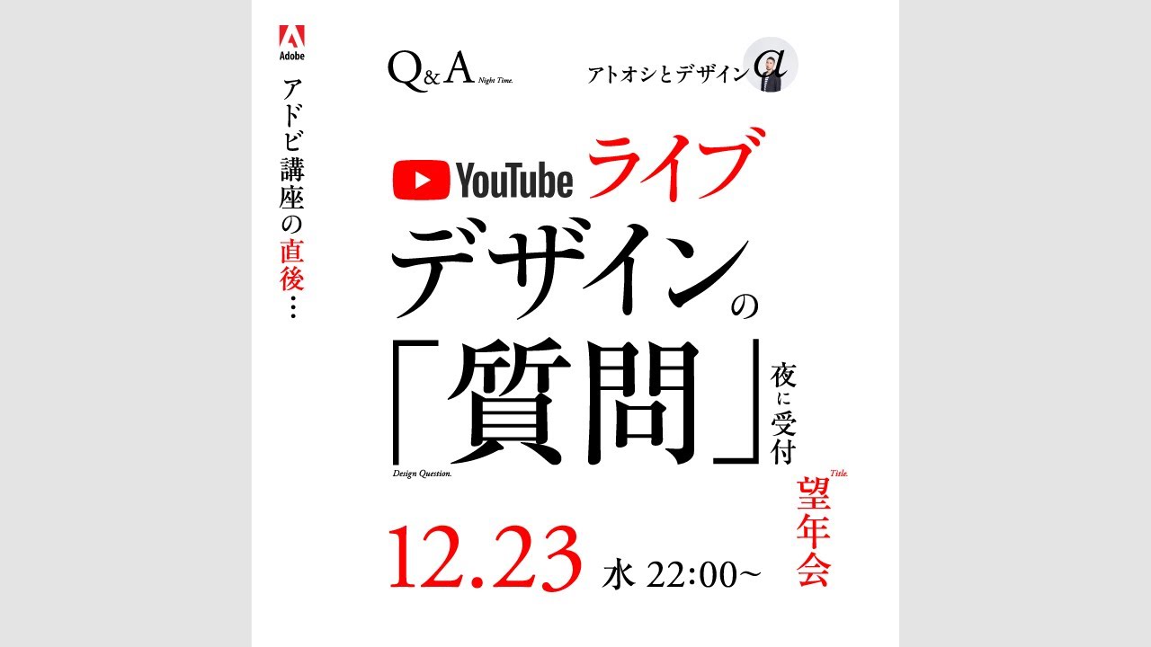 ご視聴、感謝です! これからも、“クリエイター&ノンデザイナー”にむけて、「グラフィックデザインの考えかた・コツ」を「日本一、わかりやすく、おもしろく」伝えます。ぜひ、チャンネル登録をお願いします! ■ 登録はコチラ→ https://www.youtube.com/c/atooshi_design?sub_confirmation=1