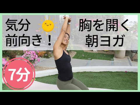 胸周りを開きながら、全身ストレッチしていく初心者さんむけ朝ヨガ。