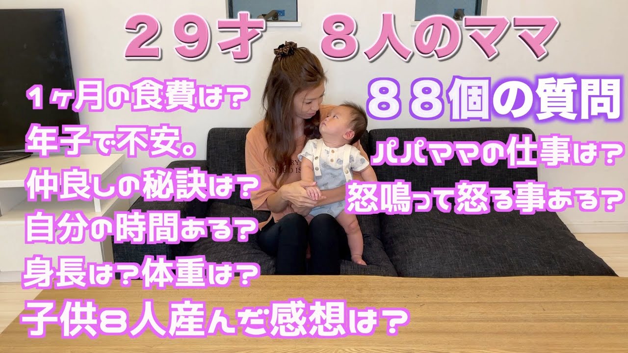 パパ(31)ママ(29) 長男(11)次男(10)三男(8)長女(6)次女(5)三女(4)四男(2)五男(0)いつも動画をご覧頂き、コメントして頂きありがとうございます♪ 前回はたくさんの質問ありがとうございました。ランダムになってしまいましたが、今回は88個の質問にお答えしました。 #大家族 #質問コーナー #なかよしだいかぞく ご飯なかよしだいかぞくルーティン大家族川口春奈料理育児自己紹介質問質問コーナー食費