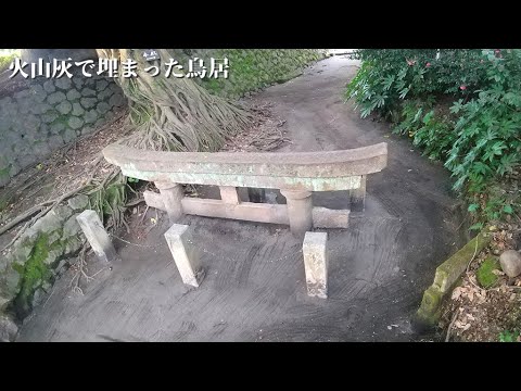 この鳥居は火山灰で埋まってます。