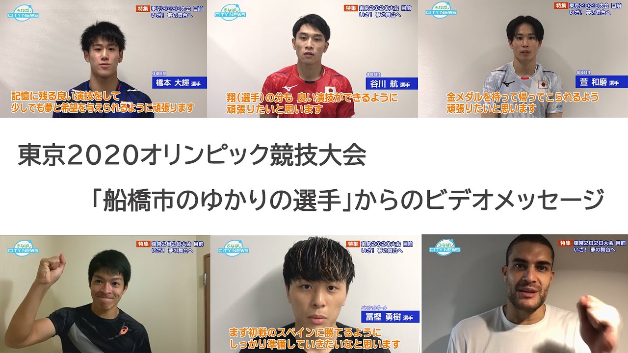 今回の放送では、これまで東京2020大会の市が行ってきた取り組みとともに、船橋市にゆかりのある代表選手の「谷川航選手(体操)」「橋本大輝選手(体操)」「萱和磨選手(体操)」「伊東利来也選手(陸上)」「富樫勇樹選手(バスケットボール)」「ギャビン・エドワード選手(バスケットボール)」から市民へ向けたビデオメッセージをお届けします。