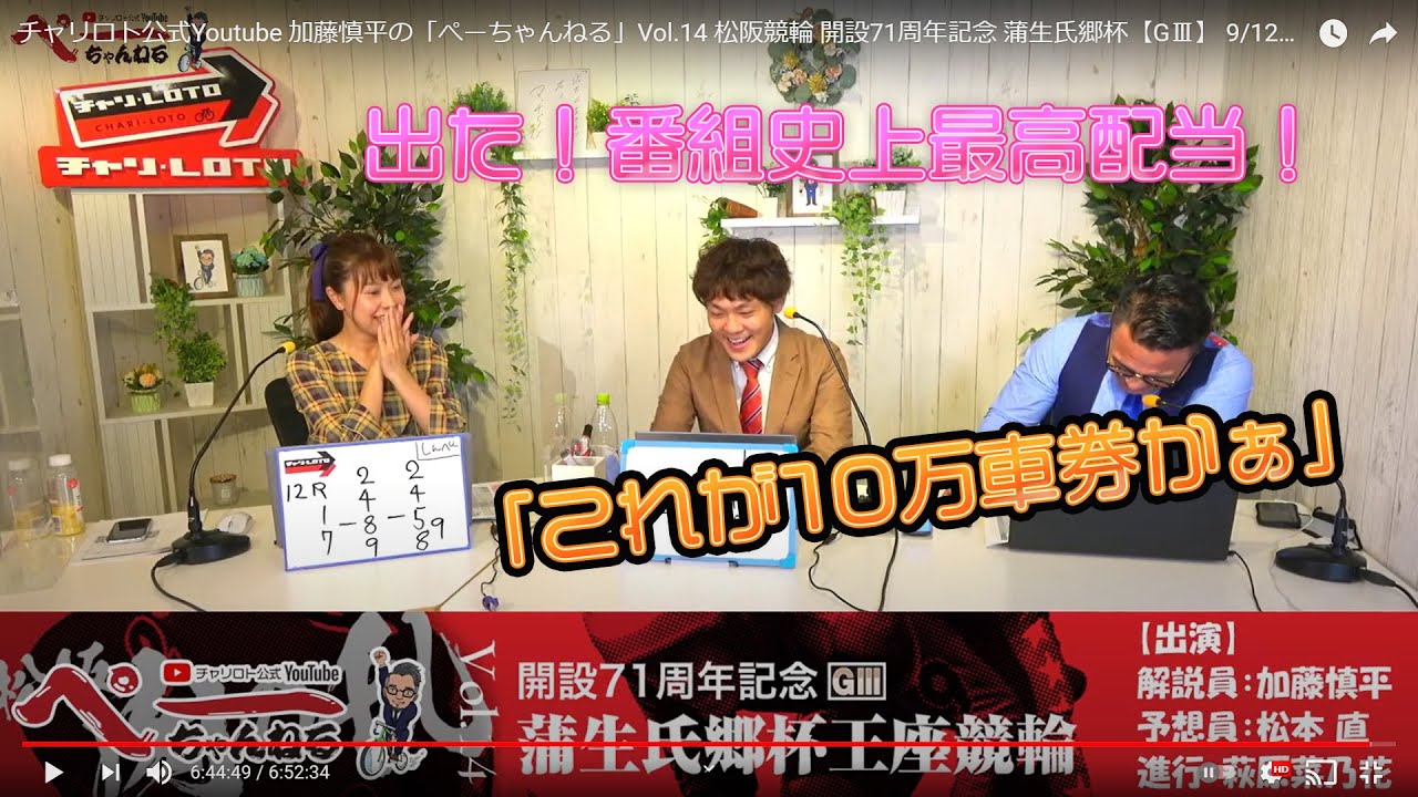 当チャンネルは株式会社チャリロトの競輪専属解説員でもある加藤慎平さんが中心となって、記念競輪やその他の競輪レースをより深く、より楽しくお送りする番組です。