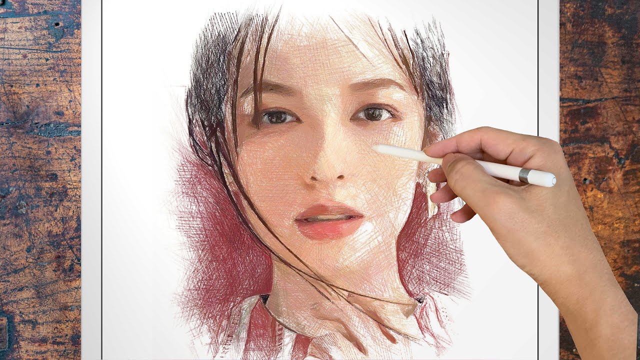 森絵梨佳さんのイラストを描いてみました。このチャンネルでは「クロスハッチング」という絵画技法を使い、主に線だけを重ねて色彩デッサンを描いています。