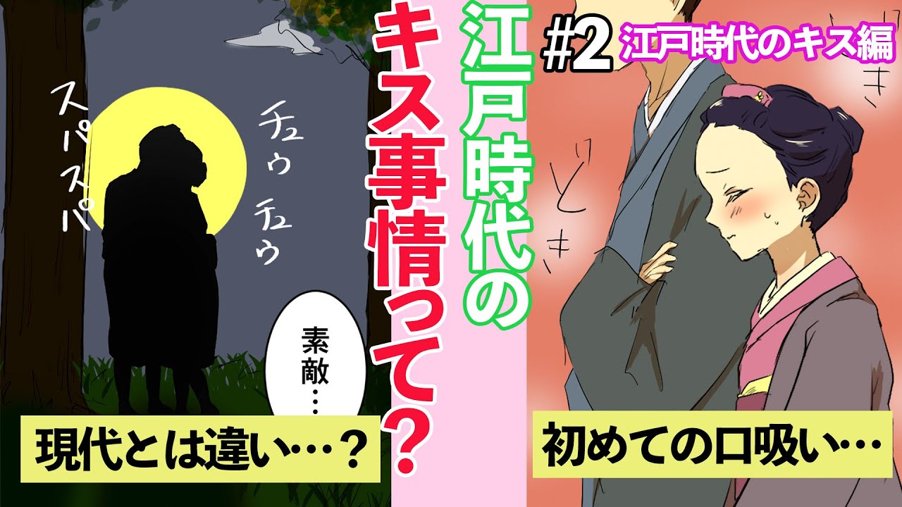 【あらすじ】江戸時代のキスってどんな感じだったのか?キスと口吸いって違うの…?現代の作法の違いややり方を漫画動画にしました☆