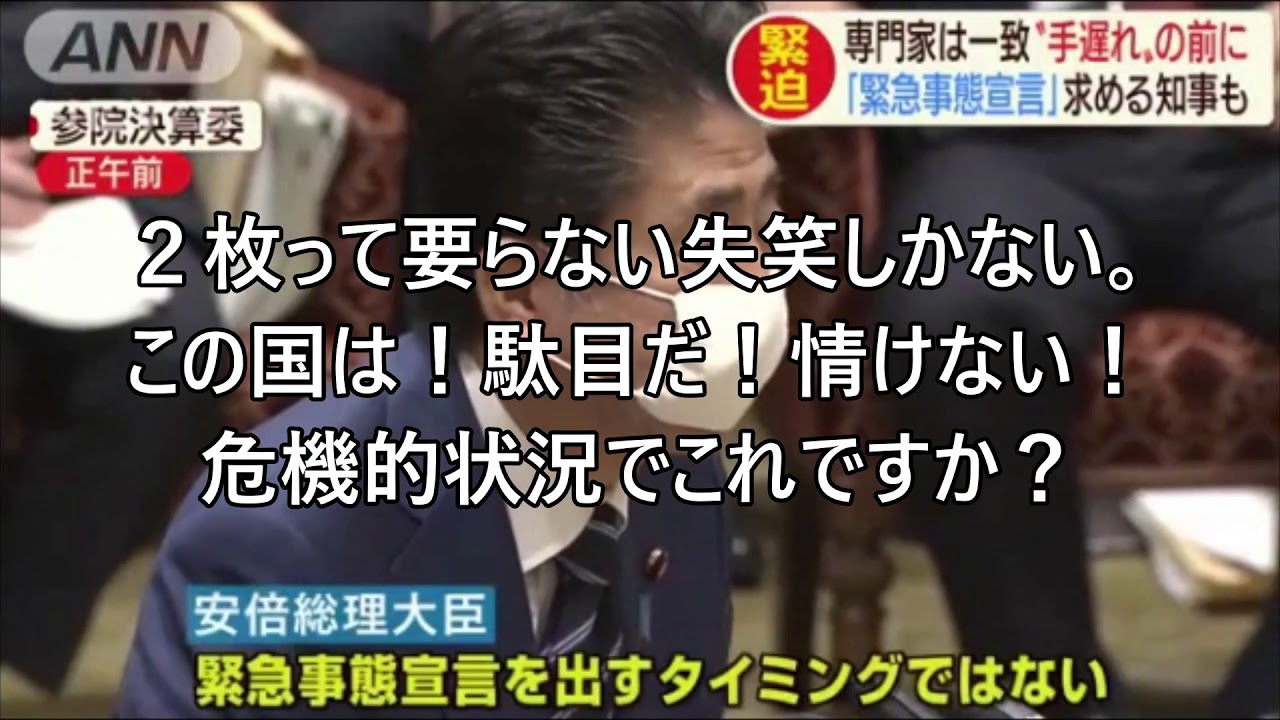 新型コロナウイルスで(マスク配布2枚・・・・・)
