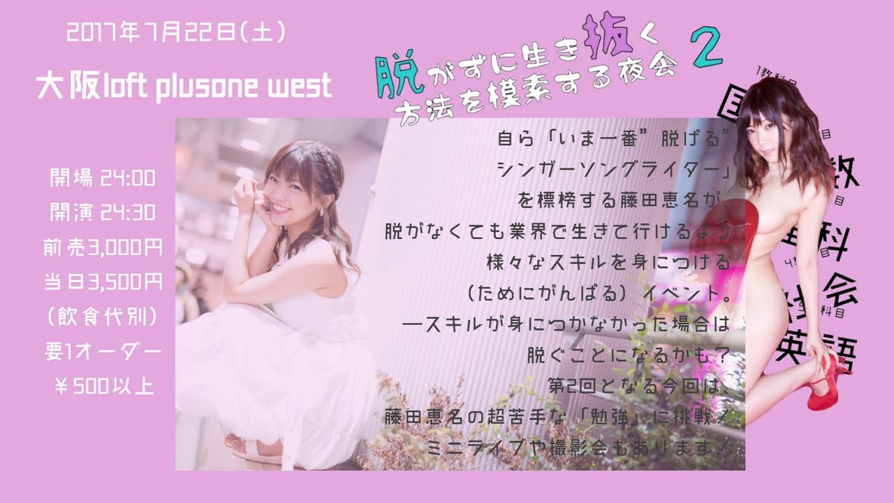 2017年7月22日に大阪LOFTプラスワンWESTにて行われるイベント「脱がずに生き抜く方法を模索する夜会 Vol.2」に先駆けて、藤田恵名が5教科ドリルに挑戦!