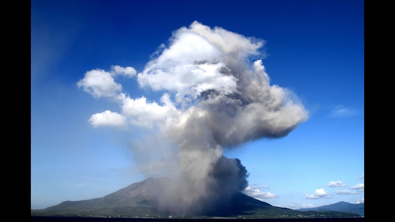 桜島噴火と雲の流れ
