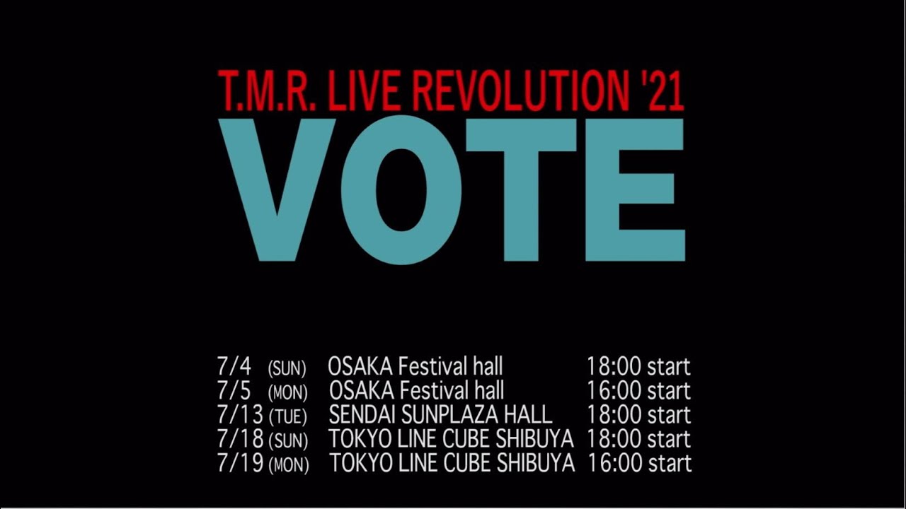 T.M.R. LIVE REVOLUTION ’21 VOTE 2021.7.19 LINE CUBE SHIBUYA ▼Info Twitter:https://twitter.com/TMR15 Instagram : https://www.instagram.com/takanori9nishikawa/ http://www.tm-revolution.com/ LIVET.M.R.T.M.RevolutionTMRVOTE西川貴教
