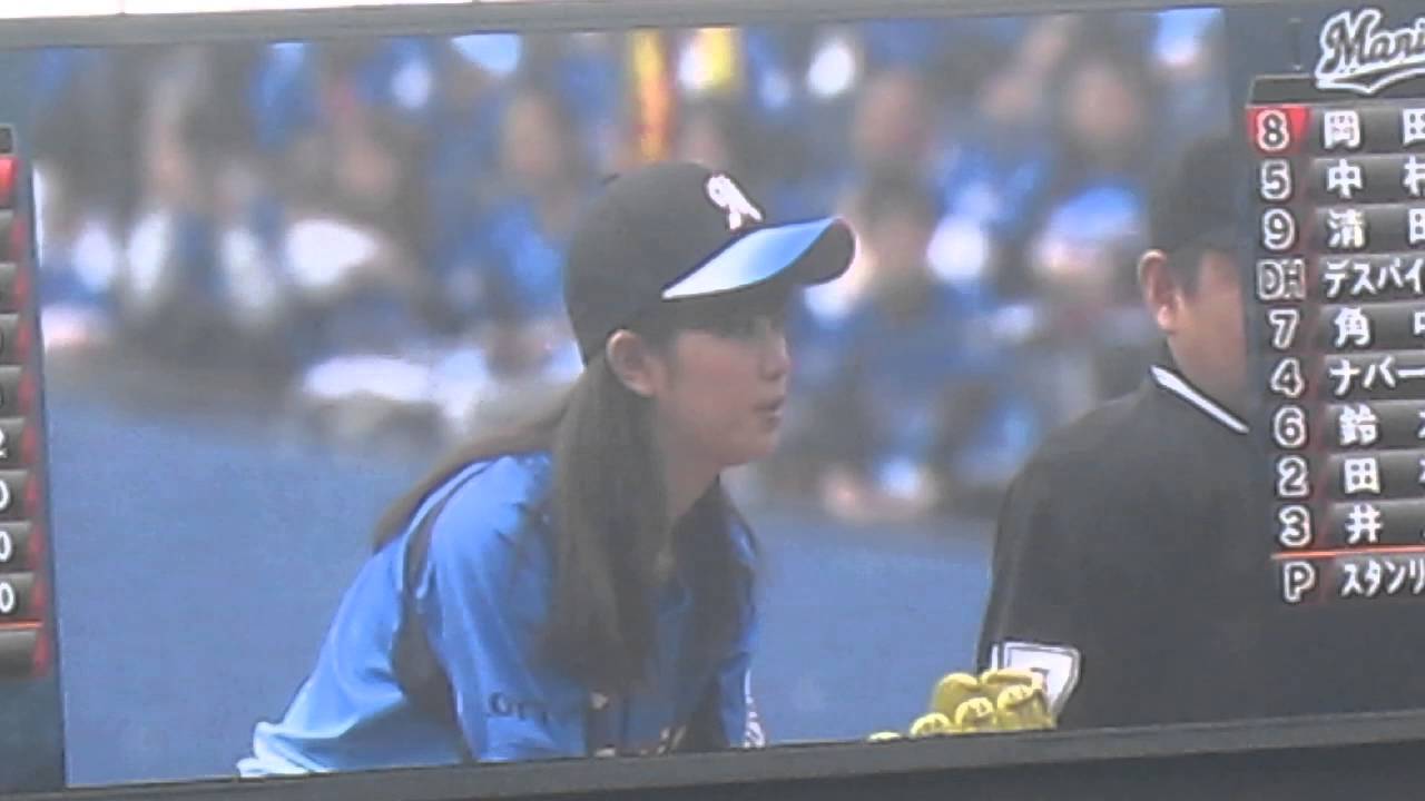 160424 稲村亜美 始球式 in QVCマリン