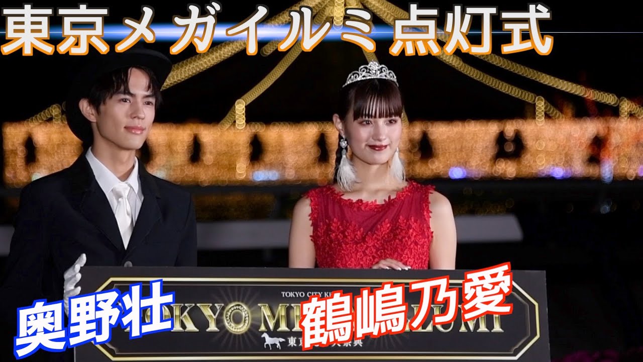 俳優の奥野壮(21)と女優の鶴嶋乃愛(20)が15日、「東京メガイルミ2021―2022点灯式」に出席した。