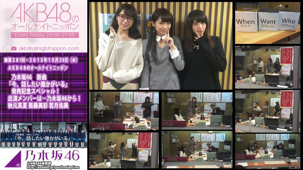 メンバー 乃木坂46 秋元真夏 衛藤美彩 若月佑美 乃木坂46 新曲「今、話したい誰かがいる」発売記念スペシャル! 再生リスト https://www.youtube.com/playlist?list=PLyNd-LZd7ir9MKsUHL-Uk-0hnkuWjqFkU 番組へのメール akb@allnightnippon.com AKB48 オールナイトニッポン ANN AKBAKB48AKB48のオールナイトニッポンANNEverydayChayamachiYouthnoLaptimeオールナイトニッポン乃木坂乃木坂46秋元真夏若月佑美衛藤美彩