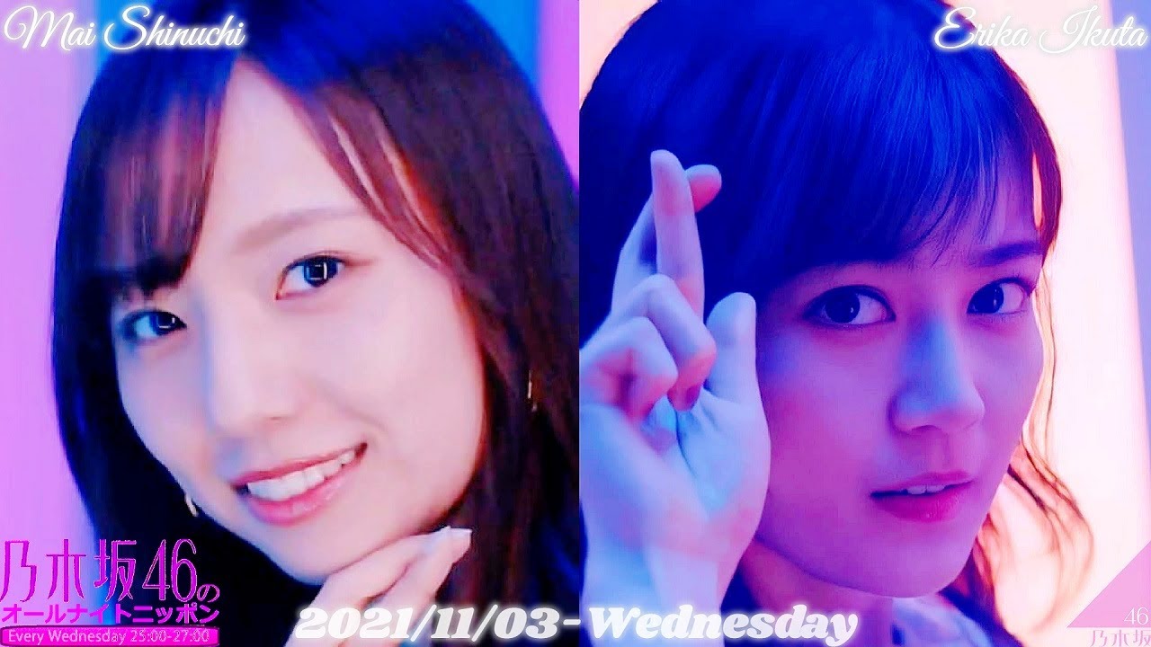 2021-11-03 乃木坂46のオールナイトニッポン『最後のTight Hug』 MC – 新内眞衣 週代わりMC – 生田絵梨花 #乃木坂46 #新内眞衣_生田絵梨花 #最後のTightHug ERIKA IKUTANogizaka46Time flies乃木坂46乃木坂46のANN乃木坂46のオールナイトニッポン新内眞衣・生田絵梨花 (乃木坂46)最後のTight Hug生田絵梨花