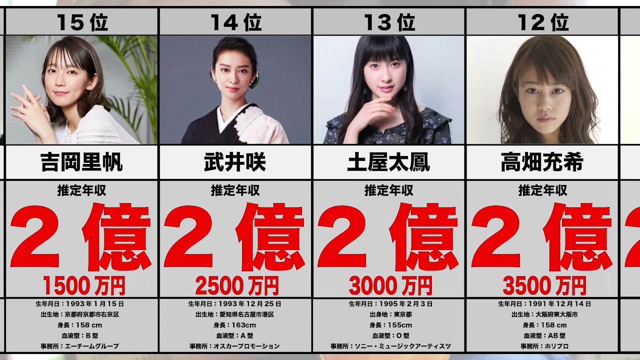 #女優#年収#ランキング#横スクロール