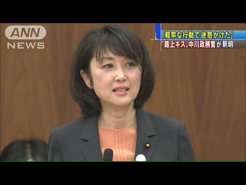 同僚議員と路上でキスをしていた姿を写真に撮られた中川郁子農林水産政務官が国会に出席し、一連の行動を陳謝しました。 中川農水政務官:「一部、週刊誌で報道がございました。私の大変、軽率な行動がございました。このことにより、皆様方に大変、ご迷惑をお掛けしていると思っています。 ・・・記事の続き、その他のニュースはコチラから! [テレ朝news] http://www.tv-asahi.co.jp/ann/ ANNNewsTV ASAHItvasahiキステレビ朝日テレ朝ニュース中川朋美中川郁子農林水産政務官予算委員会入院写真出席同僚議員国会平石直之欠席菅官房長官衆議院路上農林水産委員会陳謝