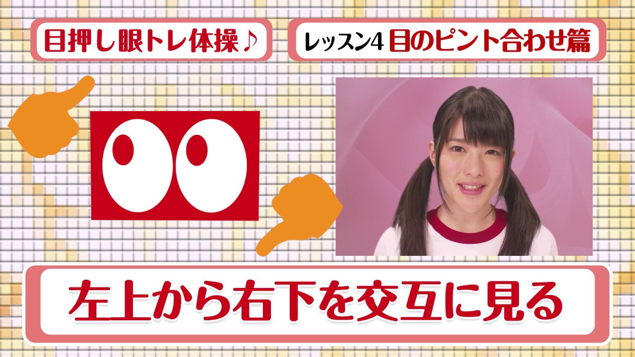 目押し眼をトレーニングする眼球体操♪です。さぁ!えりなと一緒にLESSON1から4まで、リズムに合わせて実践してみよう!1日1回毎日続けると目押しが上達しますよ♪