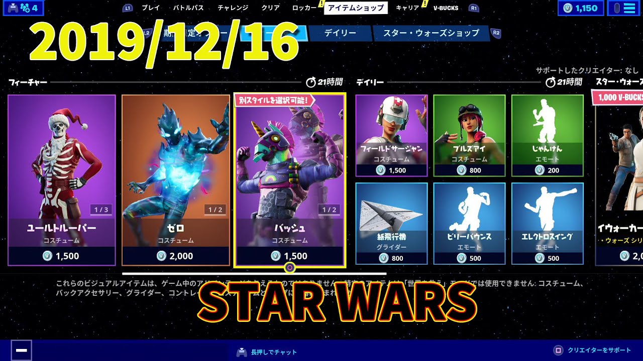 【Fortinte】フォートナイト スターウォーズコラボ中! 本日のアイテムショップの商品を紹介しています♪チャンネル登録をして過去のものも参考にしてくださいませ!-------------------------♦︎チャンネル登録はこちら↓♦︎ツイッター↓ ♦︎アメブロ↓------------------------- #スターウォーズ #フォートナイト #アイテムショップ 2019年12月16日スターウォーズコラボ中FortniteSTARWARSアイテムショップアンコモンエモートグライダーコスチュームコモンスキンスターウォーズスラープつるはしフォートナイトフォートナイトアイテムショップレア限定