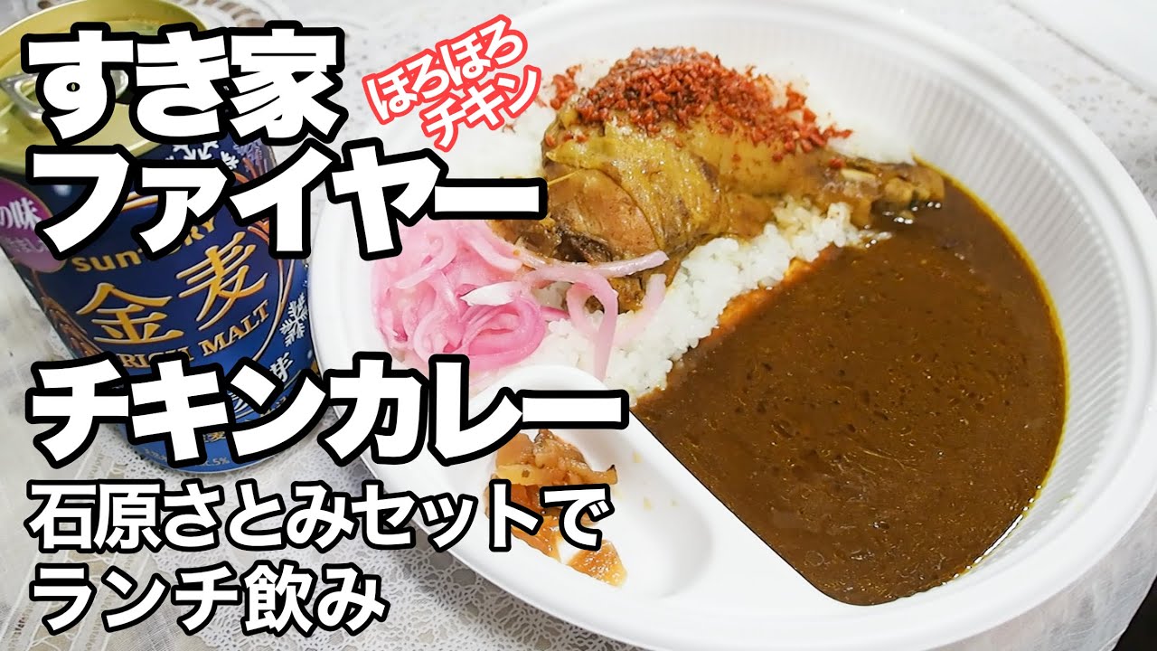 こんにちは、カレー大好き昼殻呑蔵です。今日は、すき家さんから「ファイヤーチキンカレー」をテイクアウトして来ましたよ。お供はもちろん、「金麦」です。