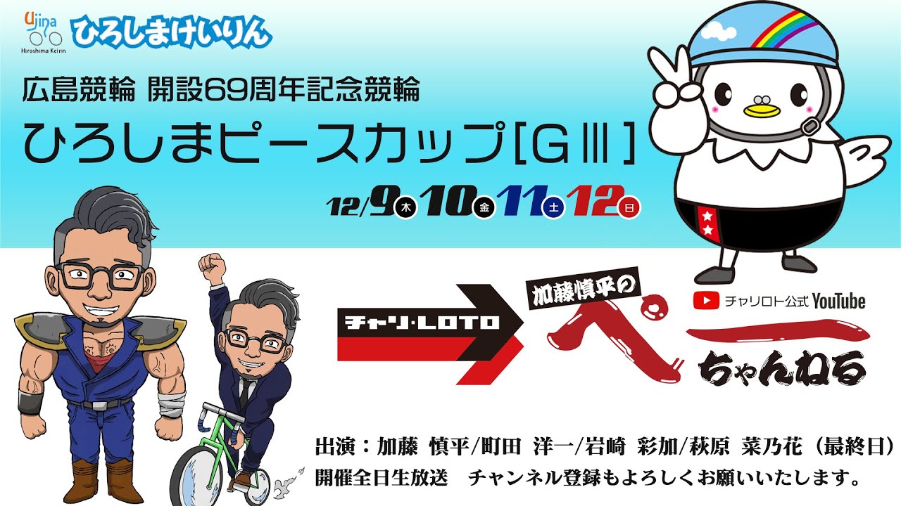 当チャンネルは株式会社チャリロトの競輪専属解説員でもある加藤慎平さんが中心となって、記念競輪やその他の競輪レースをより深く、より楽しくお送りする番組です。