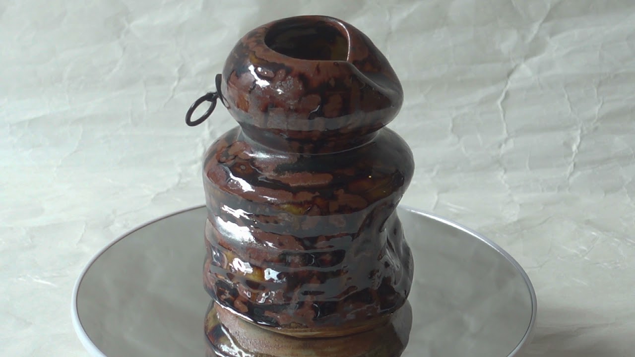 このような茶褐色の釉薬を瀬戸釉と呼び、この花入れの型が