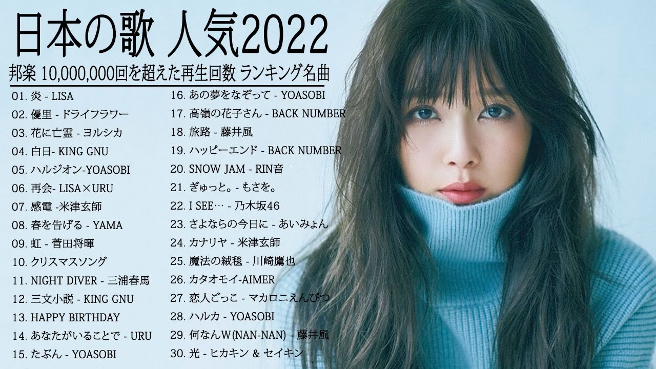 J-POP 最新曲ランキング 邦楽 2022🎄🎅🎄優里 、米津玄師、菅田将暉、YOASOBI、あいみょん、LISA, back number , 三浦春馬