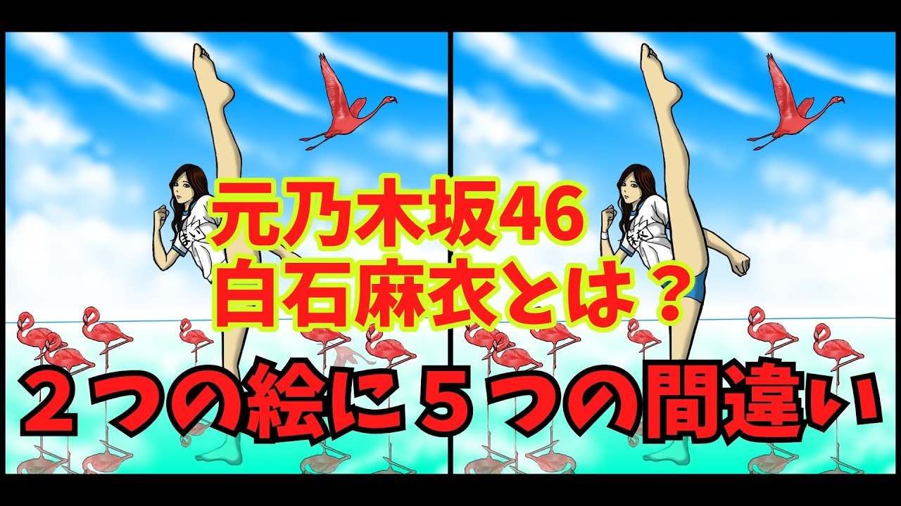 二つの画像を見比べて、5か所の違いを見つけ、ついでにアイドル の事も、ちょっと知っちゃいましょう。 ※情報は動画アップ時のもので年齢等、変化するものがあります。#間違い探し #白石麻衣 #朝日奈央00:00 説明/explanation 00:50 第一問/question1 02:54 答え合わせ/answer check 03:31 第二問/question2 05:36 答え合わせ/answer checkFree BGM DOVA-SYNDROME. #FindTheDifference#SpotTheDifference#脳トレボケ防止MaiShiraishiNaoAsahiアイドリングアイドルクイズまいやん乃木坂46朝日奈央白石麻衣認知症間違い探し頭の体操