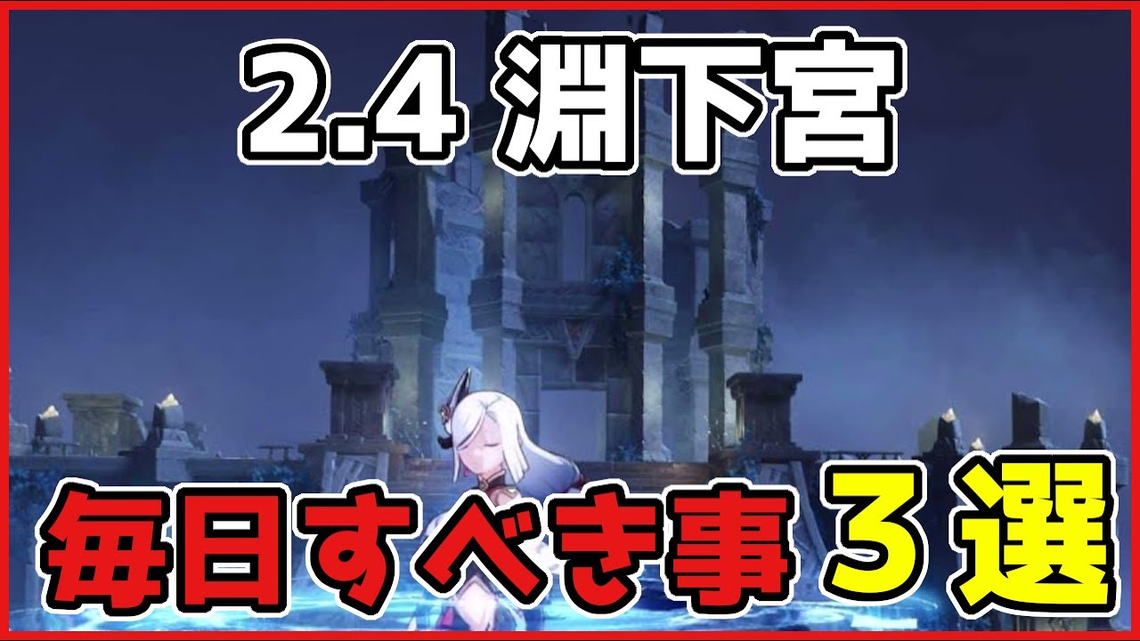 原神げんしんの最新バージョン2.4/Ver2.4にて「淵下宮(えんかのみや)」で毎日すべき事「3選」についてご紹介した動画になります。