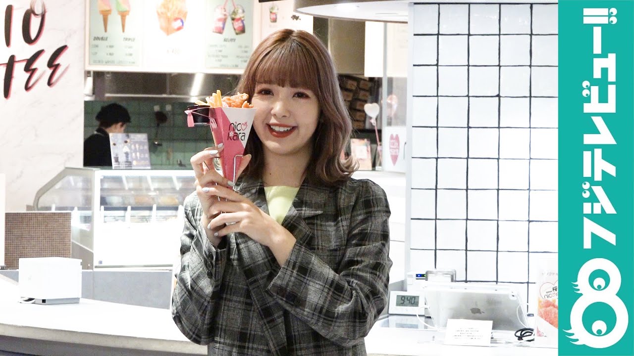 SHIBUYA 109と藤田ニコルが共同開発したピリ辛ディップの新しいから揚げ「nikokara(ニコカラ)」の販売を記念して3月15日(日)に行われた、囲み取材の様子。