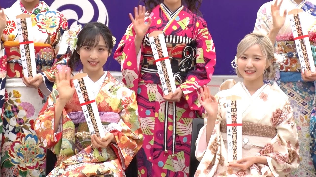 アイドルグループ・AKB48の小栗有以、本田仁美ら12人が10日、“アキバの守護神”として知られる東京・神田明神で成人式記念撮影会を行った。
