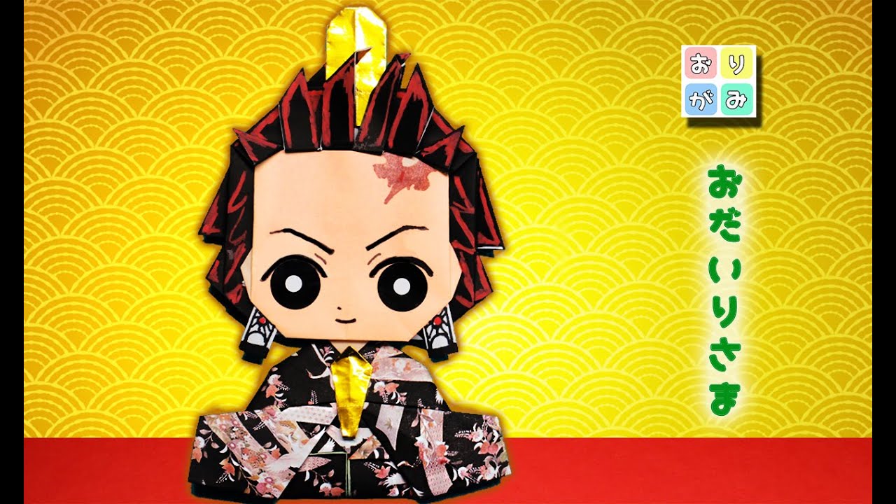 折り紙で鬼滅の刃の炭治郎のお内裏様をつくります。